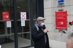 Prise de parole de Philippe Gautier : (secrétaire générale / SNAM CGT) à la sortie de la Réunion avec le DRAC .