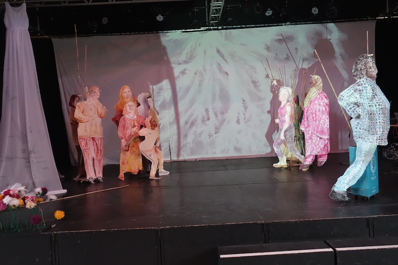 En présentiel avec très peu de monde, ce n'est pas la Ruche de 30 à 40 personnes qui s'activent en peinture, couture, a chorégraphier, à chercher les sons qui accompagneront la prochaine création des "Petits Pays Macroscopiques déjà annulés au Grand Renc'Art de juin 2020 et à Tissé Métisse de décembre 2020 .